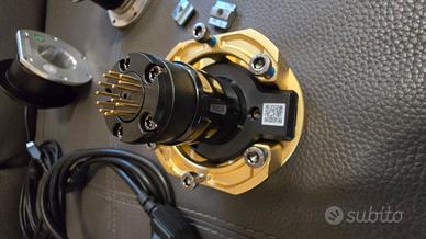 Vendo per passaggio ad altra base fanatec CSL DD + BOOST KIT 8 Nm. Presenti nella scatola originale anche i quattro bulloni a T per montaggio, piu numero TRE QUICK RELEASE QR1 di cui 2 nella scatola originale, più un PODIUM HUB usato un paio di volte di cui purtroppo non ho la scatola originale N.B. Non vendo corone perché le sto usando con la mia attuale base fanatec ma con i quick release potete facilmente acquistare una corona qualunque non necessariamente del marchio e renderla compatibile. Fanatec Pedals V3 + performance kit completo di tutti gli elastomeri + damper kit. La pedaliera riporta segni di usura e il motorino aptico del freno risulta mancante per guasto ma non impedisce il corretto funzionamento della pedaliera stessa. Regalo insieme anche un table clamp originale mai usato hel caso in cui aveste necessita di attaccare la base ad una scrivania o un tavolo. Risulta funzionante, riporta chiaramente segni di usura.
