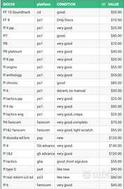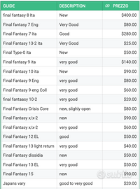Ciao Vendo la mia amata collezione di Final Fantasy.