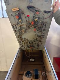Flipper in ottime condizioni, fermo da almeno 40 anni ma sempre stato all’asciutto. Non funziona. Attaccando a corrente si accendono le luci. Da revisionare. Ritiro a bergamo a mano. 450 € Vintage flipper restauro epoca modernariato pinball