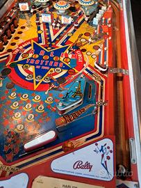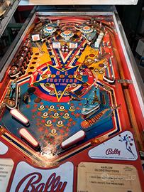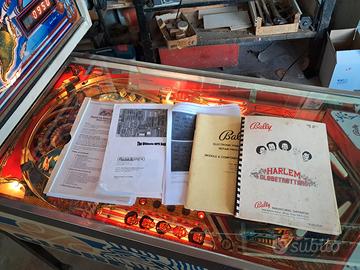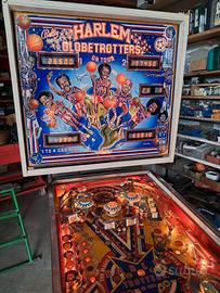 Harlem Globetrotters in buone condizioni. Ottimo per giocare e per arredamento. Scheda madre sostituita con scheda universale (la scheda originale "riparabile da persona esperta" viene comunque consegnata insieme al flipper) fatta modifica (invisibile e reversibile in 3 minuti) per "caricare la gettoniera" e "disattivare il flipper" con pulsanti sul retro. Funziona perfettamente, tutte le lampadine e le gomme OK, ha piccoli problemi sulla scheda audio (visto che mi scrivete in molti per chiedermi chiarimenti, specifico che la scheda si puo sistemare sicuramente con poca spesa visti i componenti "comuni" che installa oppure sostituire con altra con circa 100 120 euro). Grafica del vetro con qualche imperfezione (normale vista l'età) e particolare in plastica esterno al piano di gioco (solo difetto estetico) scheggiato. Vendo per inutilizzo e per liberare spazio. Dotato di tutti i manuali originali e di quelli della nuova scheda madre. Preferisco ritiro di Persona con presa visione dell'oggetto (di cui posso raccontare tutta la storia dal 2010 ad oggi). Astenersi per cortesia perditempo, il prezzo è ragionevolmente "trattabile".