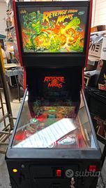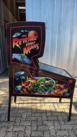 Propongo in vendita un Revenge from Mars L'ultimo Bally costruito, la continuazione del famoso Attack From Mars, molto divertente e veloce. Il flipper viene venduto con decal testata nuove, gommini nuovi color rosso, piano di gioco e gemme con illuminazione a led, PC originale e sostituito ventole condensatori esausti e aggiornato alla versione 2.50, piano di gioco protetto con mylar e buca di destra protetta con Hole Protector in acciaio, monitor originale con colori vivi, vetro originale, perfettamente funzionante. Richiesta 2490 euro. Il flipper si trova a Cinisello Balsamo nord di Milano.