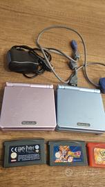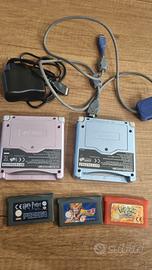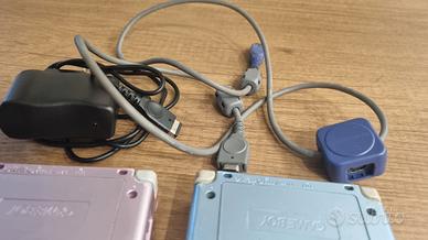 Coppia di game boy advance sp (rosa e azzurro) perfettamente funzionanti ( schermo, audio, tasti, batteria ecc) leggeri segni del tempo sulle scocche (vedi foto) ORIGINALI in tutte le loro parti , allego giochi originali e funzionanti ( pokemon rosso fuoco / dragonball Z/ harry potter prigioniero di AZKABAN ) , insieme al cavo di scambi originale nintendo e un caricabatterie compatibile ( caricabatterie non originale)