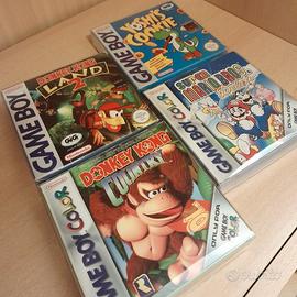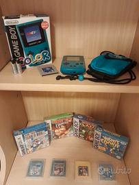Vendo in lotto o singoli collezione Nintendo game boy: Un game boy color azzurro perfettamente funzionanate, in perfette condizioni, completo di scatola, manuali e pure raro borsellino azzurro come da immagini (200) Quattro giochi game boy con scatola e Tetris con manuale: Yoshi's Cookie Gig ita raro! (120) Donkey kong land 2 Gig ita raro! (120) Super Mario Bros Deluxe (70) Donkey Kong Country (60) Tetris (25) Per tutto il lotto 550. Per info o se interessati posso fornire immagini anche dei giochi per quanto riguarda anche la presenza dei manuali. Non spedisco.