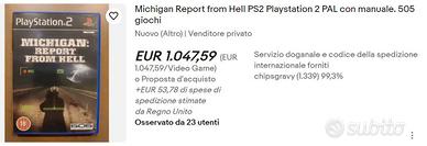Il gioco e' da collezione e molto raro ed e' venduto su siti di vendita a cifre da capogiro " PS ho inserito in foto un esempio del prezzo che questo gioco viene venduto " poi eventuali ricerche potrete costatarle da voi ma facendo riguardo ed estrema attenzione di cercarlo tra quelli con filigrana Sony / Nuovi mai aperti !!!