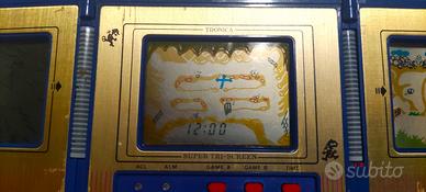 Vendo raro videogioco Game & Clock LCD marca Tronica modello TI-31 anno 1983 gioco Treasure Island triplo schermo, perfettamente funzionante in buone condizioni come da foto. Guardate BENE le foto, se avete dubbi chiedete pure. VENDITA TRA PRIVATI CON FORMULA VISTO PIACIUTO.