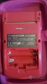 Gameboy Color rosa funzionante, con custodia rigida (è una custodia generica). La plastica che copre lo schermo ha delle righe dovute all'uso.