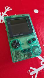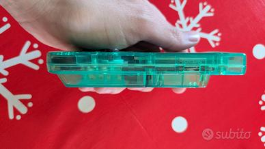 Gameboy pocket, schermo IPS, case verde trasparente, speaker nuovo. Lo schermo è leggermente storto (si vede in foto) ma non crea problemi mentre si gioca. gioco e le batterie non sono inclusi. Scrivetemi per ulteriori chiarimenti se necessario.