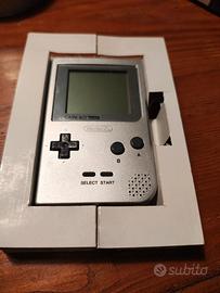 Gameboy pocket silver completo di scatola, vassoio interno in cartone bianco originale e istruzioni , perfettamente funzionante.
