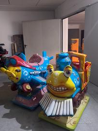 ultimi Giochi x esterno a gettoni,macchinina,aereo elicottero e treno.Tutti perfettamente funzionanti,ideali x grandi spazi verde,centri commerciali esercizio sui lidi spiaggia o anche in private abitazioni.AFFARE tel 3922423352