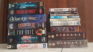 Come da titolo, vendo i seguenti giochi per il pc: Lista giochi con Box: Leo the lion - raro - 150 euro Star Craft - Versione olografica - Ultra raro - 100 euro Final fantasy 7 - Versione Piramidale - Ultra raro - 100 euro Myst - 80 euro Fury 3 - Raro - 80 euro Cutthroats - 40 euro Nirvana - 40 euro Shadow man - 40 euro Take no prisioners - 40 euro Myth 2 - 40 euro Rally - 40 euro Fighting steel - 35 euro Civilization 3 - 30 euro Silent Hunter 2 - 30 euro Pompei - 25 euro Crusader No regret - 25 euro Patriot - 20 euro Evolve - 20 euro Total Air War - 20 euro Atlantis - 20 euro Fleet Command - 20 euro Rainbow Six Covert ops - 20 euro Gothic 2 - 20 euro Dark Forces - 15 euro 7th Legion - 15 euro Sherlock Holmes Trilogy - 15 euro Dark earth - 15 euro Codename: Panzers Phase one - 15 euro Far Gate - 10 euro Runaway - 5 euro Legacy of kain - 5 euro Myst 3 Exile - 5 euro Lista giochi senza Box: Star Wars. Jedi Knight Dark Fores II - 20 euro Final fantasy 8 - Manca cd 2 - 20 euro Tomb raider the last revelation - 5 euro Tomb Raider 3 - 5 euro Faraon - 5 euro Albion - No Box - 5 euro Street Wars - 5 euro Diablo 2 - 5 euro Puzzle Bubble - 5 euro Ring - 5 euro Heroes 3 - 5 euro Civilization - 5 euro Vi ricordo che questi sono dei "retro games". Funzionano perfettamente su sistemi operativi da Xp in giù. Non garantisco che funzionino su sistemi moderni!! Mandatemi una email con i giochi che vi interessa. Mi mandero delle foto dettagliate (se volete, mi lasciate il vostro numero di Whatsapp). Vendo con la clausola "Visto e piaciuto". Non esitate ad inviarmi una emai per qualsiasi dubbio o richiesta !!!