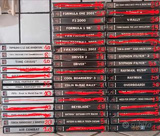 nell'ultima foto i giochi sono con custodie rovinate. overboard, gran turismo, time crisis, driver, hercules, fifa, toca, die hard , formula 1, cool boarders, colin mcrae rally, batman, asterix, american pool, walt disney world, v-rally, tomb raider, tom e jerry, rayman, one piece, mission impossibile, hugo, monte Carlo, need for speed