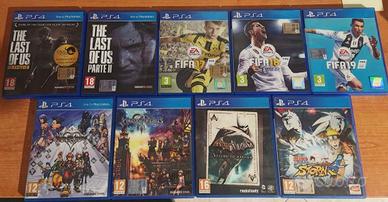 Vendo giochi PS4 sia singolarmente, che in blocco in ottime condizioni. I prezzi singoli sono 15€ per i giochi singoli versione PS4. Se l'acquisto avviene in blocco, possibilità di sconto sulla spesa totale (minimo 3 giochi).