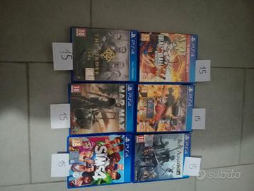 vendo ps4 fat da 500 GB completa di tutta la cavetteria e cavo HDMI,la console e quasi silenziosa e esteticamente e in ottime condizioni,vendo anche i seguenti giochi ps4 usati tutti perfettamente funzionanti,i giochi non hanno graffi e le custodie sono in ottimo stato sono pari al nuovo,sono compatibili con la ps5,mente i prezzi dei giochi sono scritti nelle foto,per qualsiasi informazione contattare sul sito.
