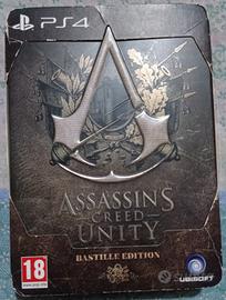 Assassin's Creed Unity Bastille Edition: completa di tutto (unico difetto nella sovracoperta in cartoncino presenta dei segni leggeri di usura e 2 piccoli strappetti ma nulla di grave) CD a specchio 40 euro