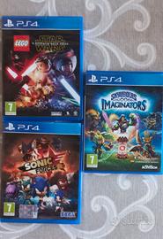 Cinque giochi PS4: Skylanders Imaginators LEGO Star Wars Il Risveglio della Forza Sonic Forces LEGO Mravel Super Heroes Trackmania Turbo Perfettamente funzionanti ottime condizioni. Disponibili anche singolarmente.