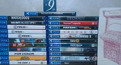 Giochi per Ps4.. Titoli come Death Stranding(SIGILLATO),Payday 2,Assassin's Creed,Uncharted 4,Ghost Recon,The Witcher 3,Wasteland 2,Spider-Man,LEGO,Persona 5,South Park(SIGILLATO),Risen 3,GTA 5,Star Wars,Addams Family,Super Pets,Kart Racers,Fifa,For Honor,House Of Ashes,Kingdom Hearts,The Last Of Us 1 e 2,Dragon Ball Kakarot,Ratchet e Clank,Cyberpunk 2077,Fallout 4 Goty,Need For Speed,Days Gone,The Crew 2,Ark,Skyrim,Devil May Cry,Minecraft,Horizon,Watch Dogs e tantissimi altri ancora.. I prezzi sono in foto e si riferisce cadauno.. Promozione 3x2 il meno caro non lo paghi!! Astenersi perditempo!!