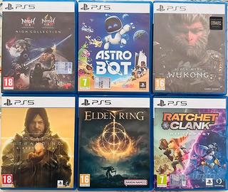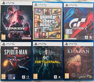 Giochi Ps5: Returnal 25€ Elden Ring 30€ Ratchet e Clank 25€ Death Stranding 25€ Gta V 25€ Spiderman Miles Morales 20€ Tekken 8 25€ Astrobot 50€ Black myth wu kong 60€ (sigillato) Gran Turismo 7 35€ Nioh Collection 35€ The First Bersenker: Khazan 35€ Sconto sull’acquisto di almeno 3 giochi Regalo 2 giochi ps5 se acquistati tutti insieme PREZZI NON TRATTABILI CONDIZIONI PERFETTE