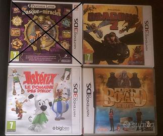 Vendo giochi per varie Nintendo (Wii, Nintendo 3DS/2DS e Nintendo DS). I giochi sono usati ma tutti perfettamente funzionanti. Ogni gioco ha il suo prezzo, offro sconti su lotti a mia discrezione. Ritiro a mano a Valeggio sul Mincio, Villafranca di Verona e Verona. Mi sposto nei dintorni solo per lotti grandi. Non spedisco. I giochi: Wii (lotto 8€ invece di 11€) - Planes (copertina francese, giocabile in 6 lingue diverse) - 3€ - Virtua Tennis 4 (copertina e gioco in italiano) - 3€ - Monopoly Editions Classique et Monde (copertina e gioco in francese) - 3€ - Yamaha Supercross (copertina internazionale, giocabile in 6 lingue diverse) - 2€ 3DS (lotto 23€ invece di 28€): - Mario & Luigi Paper Jam Bros. (copertina italiana, giocabile in 8 lingue) - 14€ - Mario Party Island tour (copertina francese, giocabile in 8 lingue) - 6€ - Dragon Trainers 2 (Dragons 2) (copertina francese, giocabile in 6 lingue) - 6€ - Asterix et le domaine des Dieux (copertina francese particolarmente rovinata, giocabile in 6 lingue) - 2€ DS (lotto 4€ invece di 5€): - Il mio personal Trainer, Campioni di Matematica (copertina e gioco in italiano) - 3€ - Fort Boyard Le Jeu (copertina e gioco in francese) - 2€ Lotto per tutto: 30€ invece di 44€ Possibili anche lotti customizzati. Nota: se il gioco è "giocabile in x lingue", si intende anche incluso l'italiano. Di tutti i giochi, solo 2 non sono giocabili in italiano (Monopoly Wii e Fort Boyard DS). Per foto ulteriori dei giochi, dubbi e domande chiedete pure. Notare che i prezzi sono già ridicolmente bassi, soprattutto sui lotti, valuto offerte solo su lotti personalizzati.