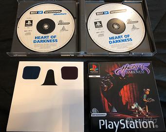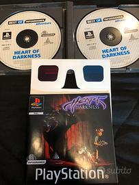Bellissimo Gioco PS1 PlayStation originale HEART OF DARKNESS, con occhiali 3d, pezzo da collezione.