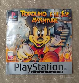 Gioco PS1 TOPOLINO E LE SUE AVVENTURE perfettamente funzionante, completo di custodia e libretto, custodia integra rotto solo un piccolo perno di chiusura nella parte superiore, SU RICHIESTA POSSO FORNIRE VIDEO CHE NE ATTESTA IL FUNZIONAMENTO.