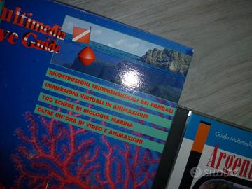 Multimedia Dive Guide, CD-ROM per Windows 95 o Windows 3.1 , 3.11, guida multimediale alle immersioni all'Argentario, alle isole del Giglio, Giannutri ed alle Formiche di Grosseto, 24 punti di immersione con percorsi e con ricostruzione in 3D dei fondali, immersioni virtuali, 100 schede di biologia marina, oltre 1 ora di video e animazioni, scatola originale e CD-ROM in perfetto stato 20 euro oppure 29 euro compresa spedizione con pacco tracciato