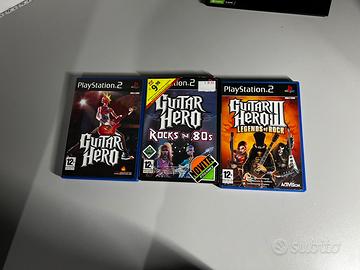 Vendo lotto di guitar hero per PS2. Il lotto comprende 2 chitarre una a batterie e una a cavo e 3 giochi che sono i seguenti: Guitar Hero Guitar Hero Rocks the 80s Guitar Hero Legend of Rock