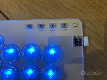 Vendo Haute42 R16 Crystal, controller leverless (stile hitbox) con illuminazione RGB, tasti hot‑swap, lcd integrato e pannello in acrilico.