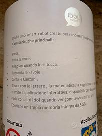 Smart robot interattivo per l'apprendimento dei bambini, Idol Robot, robot intelligente, risponde alle domande che gli vengono postele basi della lingua italiana, la matematica, il nome delle cose, colori, la frutta, le parti del corpo umano, con memoria interna da 5 GB, riproduce musica MP3, bellissimo design.
