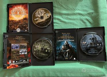 Il Signore degli Anelli “ La battaglia per la terra di mezzo” + Il Signore degli Anelli “La battaglia per la terra di mezzo 2” + Il Signore degli Anelli “La battaglia per la terra di mezzo 2 L’ascesa del re stregone” expansion pack.