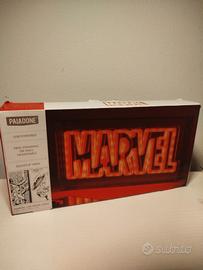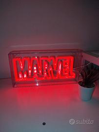 Lampada LED effetto Neon con il logo iconico della MARVEL, prodotta dalla Paladone. Un pezzo da collezione imperdibile per ogni fan dei fumetti e dei film dei supereroi, perfetto per arredare una camera da letto, una postazione gaming o uno studio. Doppio Uso: Può essere tenuta appoggiata su una superficie (scrivania, mensola) grazie alla sua base, oppure appesa al muro. Alimentazione USB: Comodissima, si alimenta tramite un cavo USB (incluso), quindi puoi collegarla al PC, a un power bank o a un adattatore da muro standard. Dimensioni: Larghezza circa 30cm (11.8"). Condizioni: Nuova, perfettamente funzionante e pulita. Viene venduta completa della sua scatola originale, ottima anche per chi volesse regalarla.
