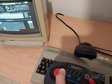 La base ha 2 comode ventose per tenerlo fermo e si collega alle 2 porte joystick/mouse dell'Amiga o Joy1/Joy2 del C64 mentre i 2 joypad (che richiedo le normali pile AAA, non fornite) comunicano senza filo con la base che invece non richiede alimentazione.