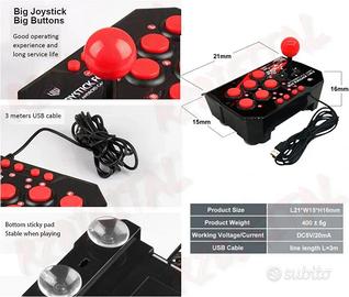 Joystick Arcade Usb per Pc Ps3 Nintendo, per MAME, NEO GEO, EMUELEC compatibile con COMPUTER, NINTENDO SWITCH, ANDROID TV, 6 TASTI FUOCO