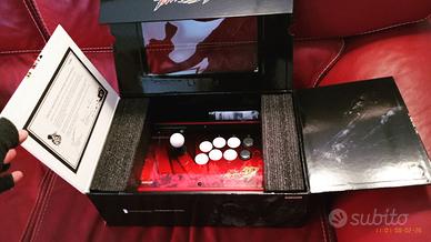 Fight stick controller della Mad Catz by Capcom versione Street Fighter IV Tournament Collector's Edition del 2009 per Xbox 360. La scatola lungo gli anni ha riportato qualche scortico ma il controller, tranne un paio di leggeri graffi, è rimasto praticamente quasi pari al nuovo dall'epoca, usato sì e no una manciata di volte in vent'anni. Con alcune accortezze può funzionare anche nel PC TEL.3716299837