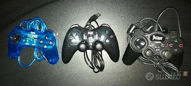 1 joystick thrustmaster per simulatori di volo e 3 joypad USB per PC di cui 1 senza levette analogiche, 1 con levette analogiche, 1 PS2 con adattatore PC. Tutti funzionanti. Non vendo separatamente.