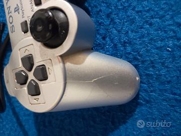 Controller per la console Sony Playstation 2 in colorazione argento.