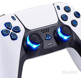 Kit eXtremeRate DTF V3 LED per controller PS5, nuovo e mai usato. Compatibile con modelli BDM-010 e BDM-020, permette di sostituire tasti, D-pad e levette con componenti luminosi multicolore dal design venatura del legno. I pezzi sono realizzati con materiali resistenti e garantiscono una luce uniforme senza alterare la funzionalità del controller. Ideale per personalizzare o rinnovare l’estetica del joystick con un set di qualità. Controller non incluso.