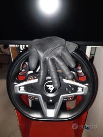 Vendo, solo per capriccio e passaggio a modello superiore con corona per Formula 1, kit volante + pedaliera Thrust Master T248 con 13 mesi di vita, 311 ore di utilizzo (dato steam), sempre usato con i guanti per non rovinarlo e/o toccarlo con mani sudate, sempre coperto con cellophan a fine utilizzo come da foto, frizione mai usata (x comodità ho tolto la placca in alluminio che è presente nella scatola originale, cosa che si può fare anche per personalizzare altezza e posizione dei pedali), frizione sempre coperta per proteggerla dalla polvere, utilizzato solo per giocare a f1, in aggiunta ho molla aggiuntiva x durezza freno oltre alle due originali in dotazione, scatola e manuali originali, 3,5 Nm di forza force feedback, piccolo display con indicatore giri, posizione, marcia, pedali magnetici, paddles cambio magnetici in perfette condizioni. Nessun problema ai tasti, poco utilizzati perchè ho sempre usato il più possibile la tastiera nei vari menu. Nessun graffio o segno.