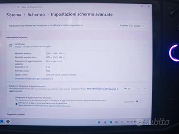 vendo LENOVO LEGION GO per inutilizzo usato pochissimo. Caratteristiche tecniche - Sistema operativo: Windows 11 Home (64 bit) - Processore: AMD Ryzen Z1 Extreme (8 core, 16 thread, fino a 5,10 GHz, architettura Zen 4) - Grafica: AMD Radeon Graphics (architettura RDNA 3, 12 CU, fino a 2,70 GHz, 8,29 TFLOPS) - Memoria RAM: 16 GB LPDDR5X a 7500 MHz, dual-channel - Archiviazione: SSD M.2 2242 PCIe 4.0 x4 da 512 GB, espandibile tramite slot microSD (fino a 2 TB) - Display: Schermo touch da 8,8" QHD+ (2560 x 1600), 144 Hz, 500 nits, 97% DCI-P3, Gorilla Glass 5 - Audio: Altoparlanti stereo con Dolby Atmos, microfono array - Connettività: Wi-Fi 6E, Bluetooth 5.3, 2x USB-C (USB4 / DP 1.4), jack audio 3,5 mm, microSD - Batteria: 49,2 Wh, ricarica rapida USB-C - Dimensioni e peso: Con controller: 298,83 x 131 x 40,7 mm / 854 g | Senza controller: 210 x 131 x 20,1 mm / 650 g - Raffreddamento: Tecnologia Legion Coldfront, TDP fino a 30 W - Controlli: Controller removibili con joystick a effetto Hall, D-pad, pulsanti A/B/X/Y, grilletti, touchpad e modalità FPS Modalità di utilizzo - Modalità handheld: Gioco diretto con il dispositivo in mano. - Modalità removibile: Controller scollegabili come gamepad tradizionale. - Modalità FPS: Controller destro utilizzabile come mouse verticale per massima precisione. - Compatibilità: Supporta accessori come Legion Glasses per esperienza visiva avanzata.