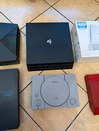 Vendo lotto di 6 console direttamente dalla mia collezione, tutte perfettamente funzionanti e complete di joystick. Il lotto include: Xbox classic PS1 PS2 PS3 PS4 pro Nintendo wii bianca boxata in foto non campaiono i vari cavi, ma sono tutti inclusi con tutte le console. Vendo dato che devo liberare spazio e non ho piu voglia di tenerle. solo scambio a mano in zona Vimercate.