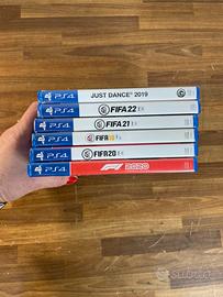 Lotto composto da 6 giochi per PlayStation 4. - F1 2020 - FIFA 20 - FIFA 18 - FIFA 21 - FIFA 22 - Just Dance 2019 I giochi sono questi che si vedono nella foto tenute molto bene L’unico difetto dalle due custodie, il centro che tiene attaccato il CD si è rotto come si vede anche nella foto Scrivi solo se veramente sei interessato Vendo tutto insieme Non vendo separatamente Il prezzo è già scontato non accetto le proposte Siccome è una vendita fra i privati, quindi: Non c’è la garanzia Nessuna restituzione