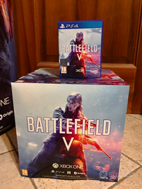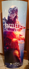 Lotto BATTLEFIELD V PS4 playstation cartonati cinematografici plastificati: cubo 31cm lato ; poster grande da pavimento con doppia facciata una differente dall'altra altezza 157cm circa, videogioco per PS4 battlefield V nuovo perfetto.