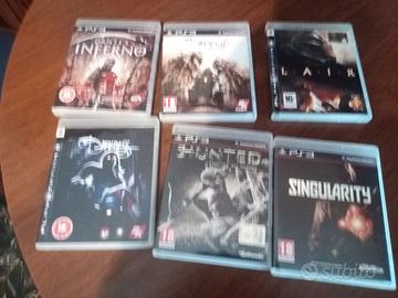 Lotto di 46 videogiochi ps3, trattabili singolarmente. Se desiderate titoli particolari contattatemi. il lotto comprende: Red dead redemption, El shaddai, hunter la nascita del demone, saints row 3 , Majin and the forsaken kingdom, darkness, Darkness 2, dante's inferno, l.a.i.r., the cursed crude,Aliens vs predatori, finale fantasy 13, murdered soul suspect, x-com enrmy unknown, Singularity, quantum theory, bullettetorm, BioShock infinite, dead rising 2, Heavy Rain, doom 3, infamous 2, baionetta, Golden ace Beast rider, rise of the argonauta, doctor Who the eternal clock, ninija gsiden 2 Sigma, Conan, Hazel, set, vanquish, Inversione, Dishonored, God of war 3, Teo world 2, Fracture, Ken il guerriero ken's rage,wolfstein, Mercensniers 2 inferno di fuoco, Dark void, Beyond due anime,Strangehold, Aliens colonial marines