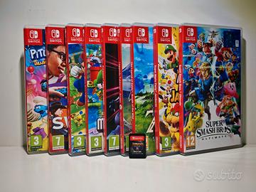 Lotto di giochi Nintendo Switch completi di custodia in italiano e cartuccia originali in versione multilingua europea.