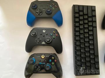 Vendo per inutilizzo lotto completo di accessori gaming, tutti puliti, igienizzati e pronti all'uso. Ottimo affare per chi cerca un set completo o per rivenditori. Il lotto comprende: - Tastiera Meccanica Dierya DK61: Layout 60% compatto, tasti retroilluminati RGB (vedi foto), perfetta per postazioni gaming PC e Console. - Controller Xbox One Originale (Nero): Modello wireless con Bluetooth, perfettamente funzionante. - Controller @Play Trasparente: Modello cablato con licenza ufficiale Xbox, molto resistente. - Controller Wireless Compatibile (Blu/Nero): Layout Xbox, testato e funzionante. - OMAGGIO: Aggiungo 2 controller non funzionanti (Xbox 360 + 1 compatibile) ideali per chi cerca pezzi di ricambio o vuole provare a ripararli.