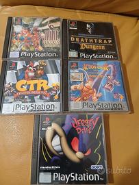 lotto di numero 9 giochi per Playstation e Psone composto dai seguenti titoli : Jersey devil Pacman world Deathtrap Dungeon Jade cocoon Syphon filter Capcom Generations ( 4 cd ) The x filex ( 4 cd ) Ctr crash team racing Hercules I giochi sono in buono / ottimo stato con copertine -manuale - custodie e disco originale , sono tutti completi di manuale eccetto Jade cocoon che gli manca ...