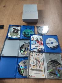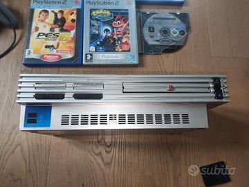 Lotto Sony Playstation 2, testata e funzionante piú accessori e Giochi tutti con copertina Francese (Crash e Smash Court Tennis 2 sono multilingua gli altri solo in francese). il lotto comprende: 1) Corpo macchina PS2 Fat silver modello SCPH-50004 2) cavo video e cavo elettrico originali. 3) 2 Pad di terze parti un analogico e uno normale. 4) Memory Card 8 mega originale Sony 5) 6 giochi originali, sono tutti con copertina FRANCESE, 3 completi di libretto, e senza, Need Carbon solo disco. Resto a disposizione per eventuali chiarimenti