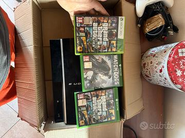 La ps3 ha:cavi,2 giochi tra cui mortal kombact,assassin’s creed black flag ma purttroppo non ho il controller però si può sempre usare uno della ps4 tramite cavo.