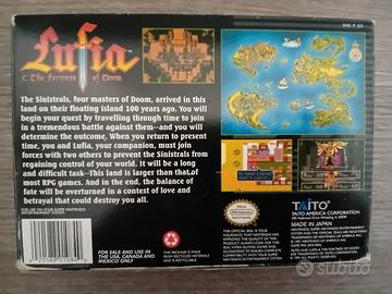 vendo gioco per console snes super nintendo americana Lufia & the fortress of doom con scatola e libretto come da foto. il gioco è considerato da molti come uno dei migliori gdr di quei tempi, sicuramente è un pezzo che i collezionisti non dovrebbero lasciarsi scappare. video del gioco funzionante sul mio profilo Facebook Luca Tommasin fatto il 31 12 2025