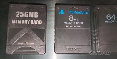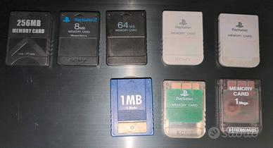 Ne ho un bel pó, originali e non. Da piccole a grandi dimensioni. Ne ho altre ma devo trovarle, originali - PS1 trasparente originale - PS2 256MB presa da amazon - PS2 Magic Gate 8mb originale (ne ho un altra oltre a quelle in foto) Funzionano tutte. Foto in arrivo.