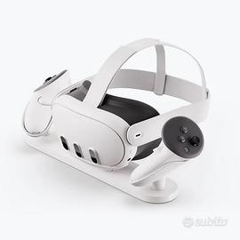 Questa base di ricarica è in grado di caricare contemporaneamente un visore Quest 3 (con cinturini standard o Elite) e 2 controller Touch Plus (con cordini o cinturini attività). La base di ricarica non è compatibile con Quest 3S.